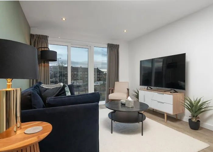 Gjestene er velkomne til å bo i Spacious Modern 2 Bedroom Old Trafford & Free Parking under oppholdet i Manchester. Stedet består av 2 soverom og 2 bad.